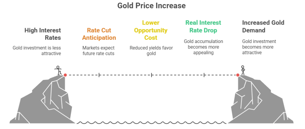 This is expected to run down interest rates, and since it works the other way, this means that an increase in interest rates will increase the opportunity cost of holding a non-yielding good like gold by a factor. Markets in 2025 have taken the expectations that the Federal Reserve will lower the rates, hence an argument in Favor of gold. The analysts observe that the expectation of the reduction of the rates in October and December was beneficial in supporting gold.